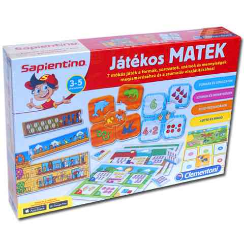 A Játékos matek fejlesztő társasjáték olyan játékok gyűjteménye, amelyet a három és öt év közötti gyerekek számára terveztek, hogy segítsen a kicsiknek elsajátítani az olyan alapvető matematikai fogalmakat, mint a különböző formák, a számok és mennyiségek, különféle sorozatok és természetesen az alapvető matematikai műveletek. Az egyedi kidolgozású önellenőrző rendszernek köszönhetően a gyerekek felnőtt segítsége nélkül is egyszerűen meg tudnak bizonyosodni arról, hogy helyes válaszokat adtak-e.