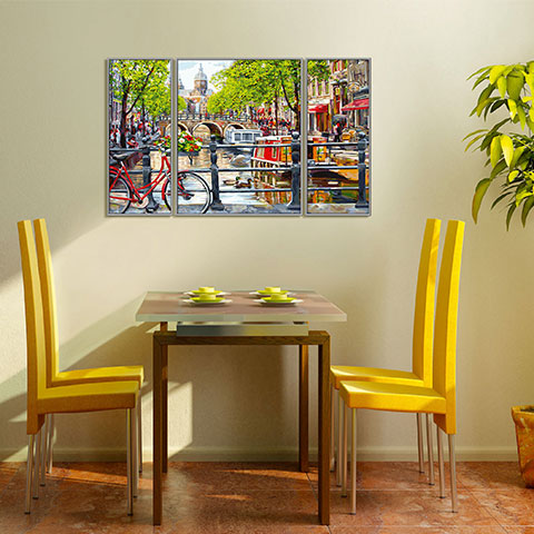 Ez a festmény akár a te ügyességedet is hirdetheti, hiszen az útmutató szerint Amsterdam varázslatos városképét is festheti meg bárki, egy három részes vászonra, ami bármely szoba falán nagyszerűen fog mutatni. A Schipper festőtáblái csodálatos képekkel segítenek a kreatív alkotásban, ahol a vásznat számozott mezőkkel látták el, és minden számhoz megfelelő színű festék tartozik, amelyek természetesen szintén a készlet részét képezik. A csomagban található egy ideális vastagságú ecset, és a megfelelő árnyalatra és állagra kevert akril festékek, amelyekkel azonnal neki lehet állni az alkotásnak.