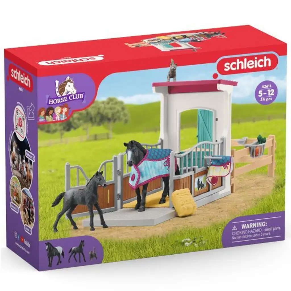 A Schleich Horse Club - Ló box kancával és csikóval játékszett (42611) tökéletes választás minden lórajongó számára, aki szeretne egy saját istállót, ahol gondoskodhat lovairól. Ez a részletgazdag készlet egy fekete kancát és csikóját tartalmazza, valamint egy szépen kidolgozott istállót és számos kiegészítőt, amelyek még izgalmasabbá teszik a játékot.