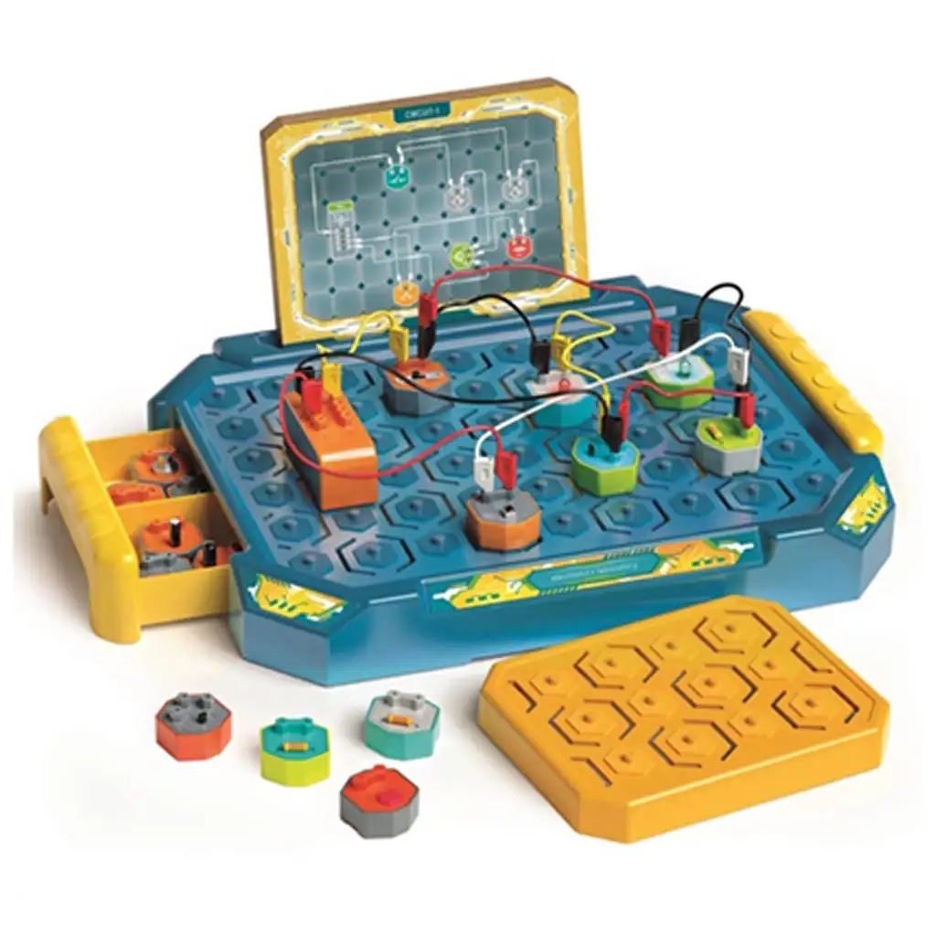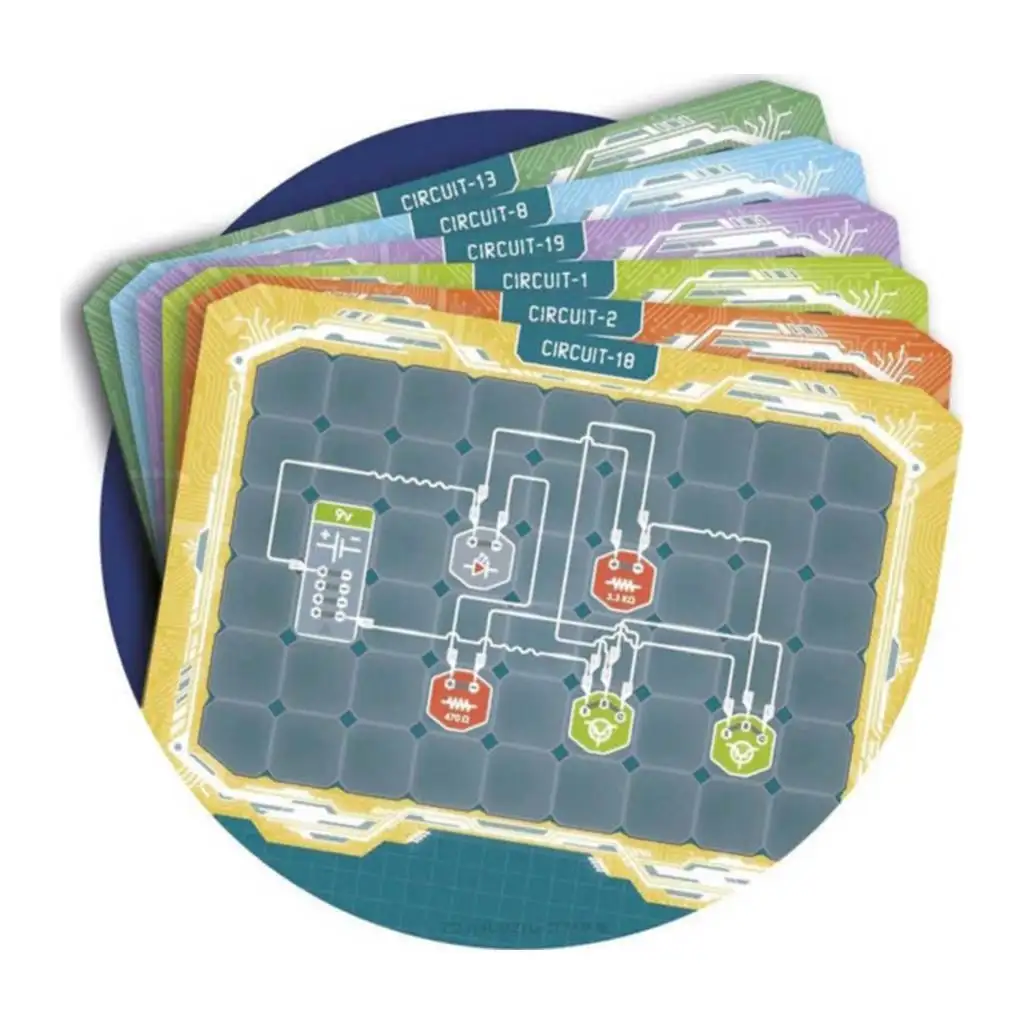 Világítási és érzékelési funkciók kapcsolhatók be az egymáshoz csatlakoztatható modulokkal és vezetékekkel egyedi munkapad segítségével. Minden iskolás aki tanulni és felfedezni szeret imádni fogja ezt a szettet, hiszen az újdonságok mindig lekötik őket. A készletben található több mint 20 különböző elektromos áramkör, 10 kétoldalas kártya és részletes útmutatók, melyek gazdag inspirációt nyújtanak a játékhoz.