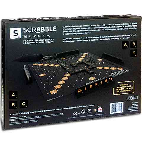 Limitált kiadású, prémium külsejű társasjátékkal ünnepelheted együtt a Scrabble-lel a játék 70. születésnapját, amely rendkívül dekoratív. A fekete és arany színekkel elkészített szókirakó társasjáték igazán mutatós, a játéktábla és a betűzsetonok is prémium aranyfóliával nyomottak. A tábla felosztása változatlan, így az értékes mezők is ugyanott találhatóak ahol az eredeti Scrabble játékban. Ünnepelj egy izgalmas játékkal és éld át újra a szókirakó izgalmait barátaiddal!