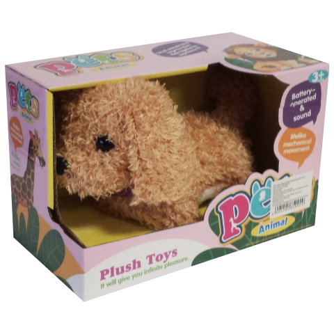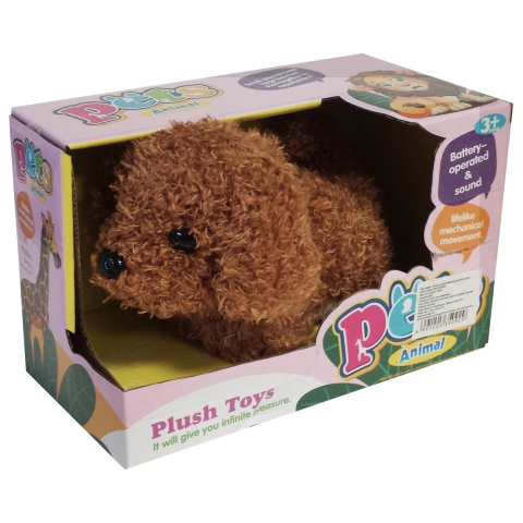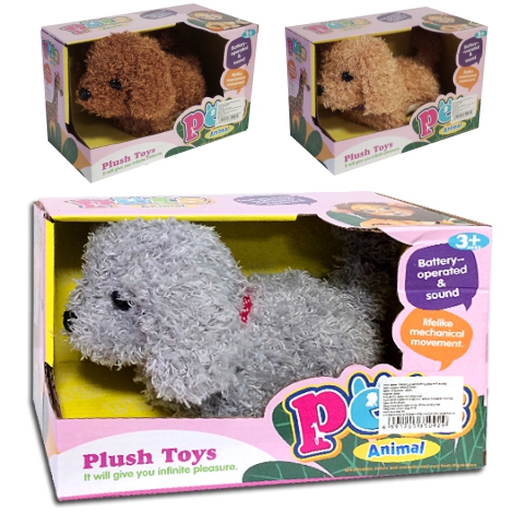 Kedves kis baráttal lehet érdekesebb a kicsik számára a játék, hiszen ez a plüss kiskutya nem csak kedves megjelenésével ösztönzi őket játékra, hanem elektronikus funkciókkal is. Bekapcsolás után a kutya előre és hátra sétál miközben ugató hangot ad, ezzel imitálva egy igazi kiskutya mozgását. Az elektronikus kutya három színben is elérhető; szürke, sötétbarna vagy világosbarna változatban. A gyerekek valódi házi kedvence lesz a bájos kiskutya!