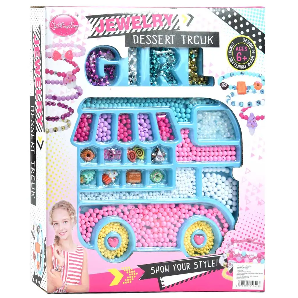 Show Your Style: Ékszerkészítő gyöngyfűző készlet fagyiskocsi alakú tárolóban 200+ színes gyöngyökkel és kiegészítőkkel