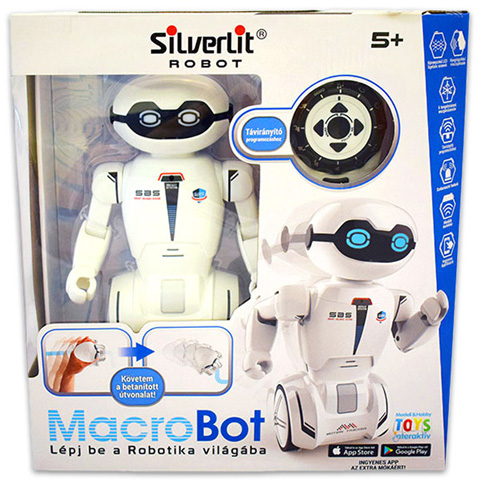 Ez a kis robot valóban sok lehetőséget tartogat magában, amelyekkel az első lépéseket teheted meg a robotika világának felfedezése felé. A kis robot noha csak két kerékkel rendelkezik nagyon jól tud egyensúlyozni, így halas közben sem bukik fel, sőt érzékeli a távolságot is, így ha túl közel kerül valamihez, akkor hátrál és elfordul, hogy kikerülje az akadályt. A MacroBot képes robothangon visszamondani a szavakat amiket mondasz neki. Tapsolással is mozgásra és táncra bírhatod a kis robotodat, aki képes követő funkcióban a távvezérlőjét követni, ahogy őrködés funkcióba kapcsolva, ha valaki a közelébe merészkedik azonnal aktiválja magát és és éles hangon figyelmezteti a betolakodót. Különleges képessége, hogy útvonalat is programozhatsz be, tárgyakat képes magával vinni, illetve egy programsorozatot is eltárolhatsz benne. Ismerkedj meg a robotokkal a MacroBot segítségével.
