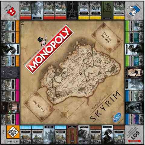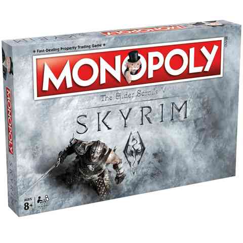 A Skyrim Monopoly az azonos című számítógépes játék alapján készült, a grafikája a helyszíneinek képeivel készült, és kifejezetten jó alkalom arra, hogy vándorló kereskedőként tegyük próbára magunkat. Az egyes területek értékei követik a történetben elfoglalt helyüket nem kell csodálkoznunk azon, hogy az Alduin által lerombolt Helgen városa a legolcsóbb, amit megszerezhetünk magunknak. Szép, fémből készült figuráival, eseménykártyáival tökéletes ajándék bárkinek, aki szereti a Skyrim világát! Természetesen a játékszabályok csak a legkisebb változásokon estek át, a játék menete és célja lényegében változatlan, így egyszerre lehet élvezni a könnyed játékmenetet és felidézni a számítógépes játék kalandjait.