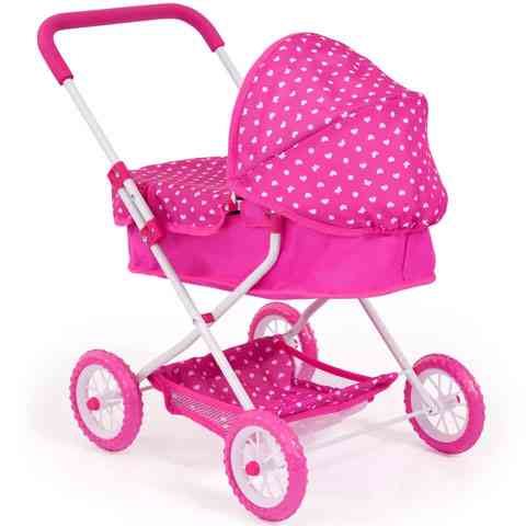 Kislányod babájához most egy különleges babakocsit szerezhetsz be, amivel biztos sikert érhetsz majd el, hiszen ki ne örülne egy rózsaszín babakocsihoz, ami megszólalásig hasonlít egy igazihoz. A babakocsi rózsaszín szivacsos fogót kapott, ezen kívül pedig napellenző és még esővédő takaró is van hozzá, amiket állítani és levenni is lehet. Alul egy tároló rekesz található meg, kerekeinek köszönhetően pedig a nehezebb terepekkel is megtud küzdeni. A kocsiba maximum 46 cm-es baba tehető be kényelmesen.