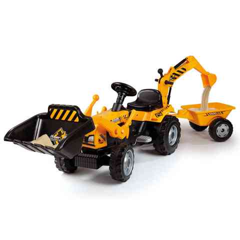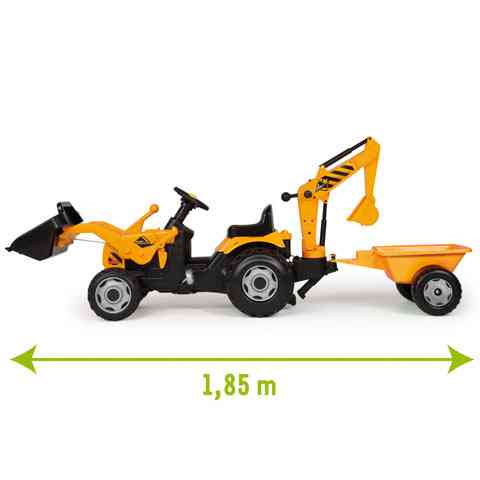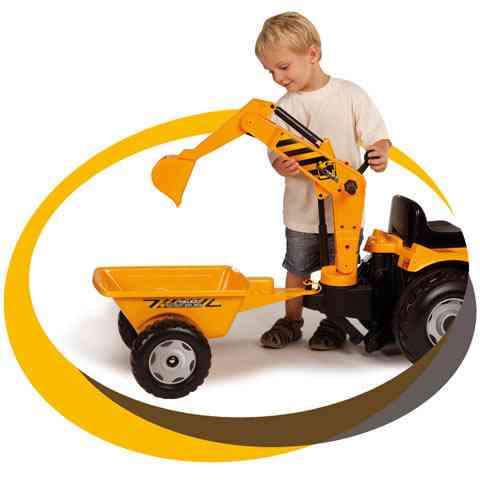 Ezzel a traktorral biztosan elégedett lesz gyermeke. Azok a gyerekek amik kedvelik a munkagépeket, ők most akár a sajátjukba is beleülhetnek. Így kipróbálhatják milyen egy homlokrakodóval tologatni a földet, vagy a játékokat, vagy milyen lehet egy utánfutóba markolni az anyagot. Majd a munka végeztével elhagyni a helyszínt a pedálok segítségével. A meghajtásról itt nem az akkumulátor hanem a testi ereje gondoskodik, így hajtható akár kifulladásig. A traktor kényelmesen kormányozható az otthoni parkettán vagy akár a kertben a füvön akár előre, vagy akár hátra menetben is. Az esetleges méretproblémákról az állítható ülés gondoskodik.