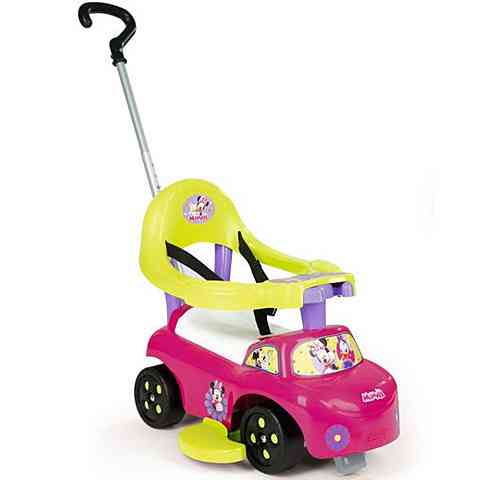 Ezentúl a kislányok a számukra tetszetős szín összeállítású járgánnyal róhatják az utakat, melyen még Minnie egér és barátnője, Daisy kacsa is feltűnik. A könnyű áthallhatóságnak köszönhetően a jármű a gyermek növekedéséhez igazítható így a tolókar és a biztonsági keret eltávolításával járássegítő lehet belőle, majd bébitaxiként vehető használatba.