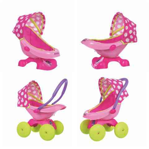 A Minnie Egeres 4 az 1-ben babakocsi igazán tökéletes játékot biztosít majd a kicsik számára. A babakocsi fekvő és ülő funkcióban is használható, valamint külön babahordóként és altatóként is működik. Itt biztos helye lesz a gyerekek babáinak és plüssállatainak!