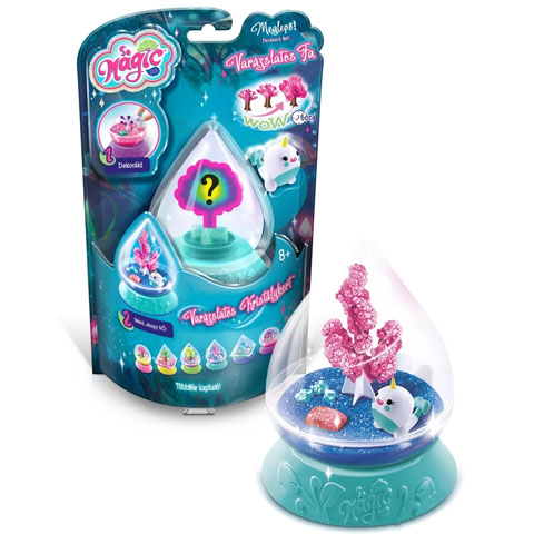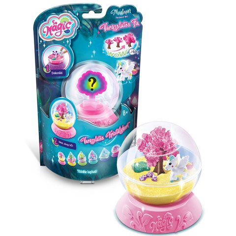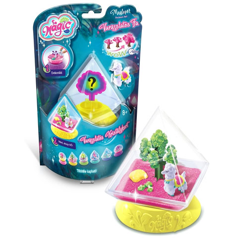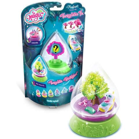 Egy különleges varázskertet hozhat létre gyermeked ezzel a szettel, melyben a vízen kívül minden megtalálható ami kellhet hozzá. A különleges kupolás műanyag terrárium alsó részébe vizet és a varázsport kell betölteni, melybe már mehet is a színes fa alap, mely körülbelül 6 óra elteltével nagy kristály lombkoronát növeszt magára. Amíg ez a folyamat tart, a fa alatti kertet lehet berendezni kristályhomokkal és apró dekorációs kövekkel, valamint a hozzá tartozó figurát is itt lehet elhelyezni.