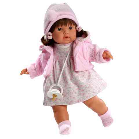 A Sofia-val való játék igazi élmény lesz a kislányod számára. Az önfeledt szórakozáson kívül pedig az élethű baba játékosan tanítja meg gyermeked számára, mit is jelent törődni és gondoskodni valakiről. Teste puha textilből, míg lábacskái, karjai és arca gyermekbarát műanyagból készültek. A papa és a mama szavak kimondására is képes, ezenkívül pedig még sírni is tud. De aggodalomra semmi ok, hiszen amint a cumiját a szájába adtuk máris megnyugszik. Rózsaszín virágos kis ruhácskában, pulcsival, zoknival és sapival együtt szállítjuk.
