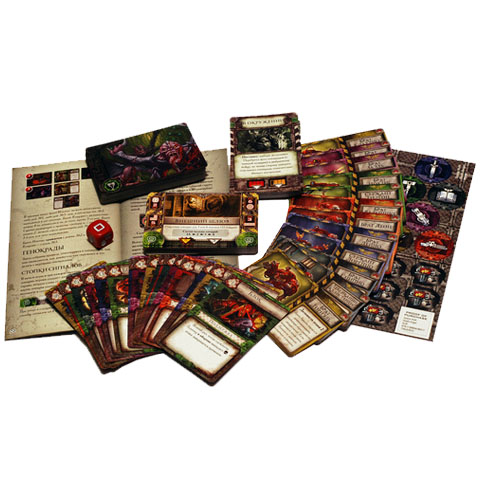 - 128 kártya (18 akciókártya, 2 fészekúrkártya, 30 eseménykártya, 36 génorzókártya, 22 helyszínkártya, 12 Űrgárdistakártya, 8 terepkártya)