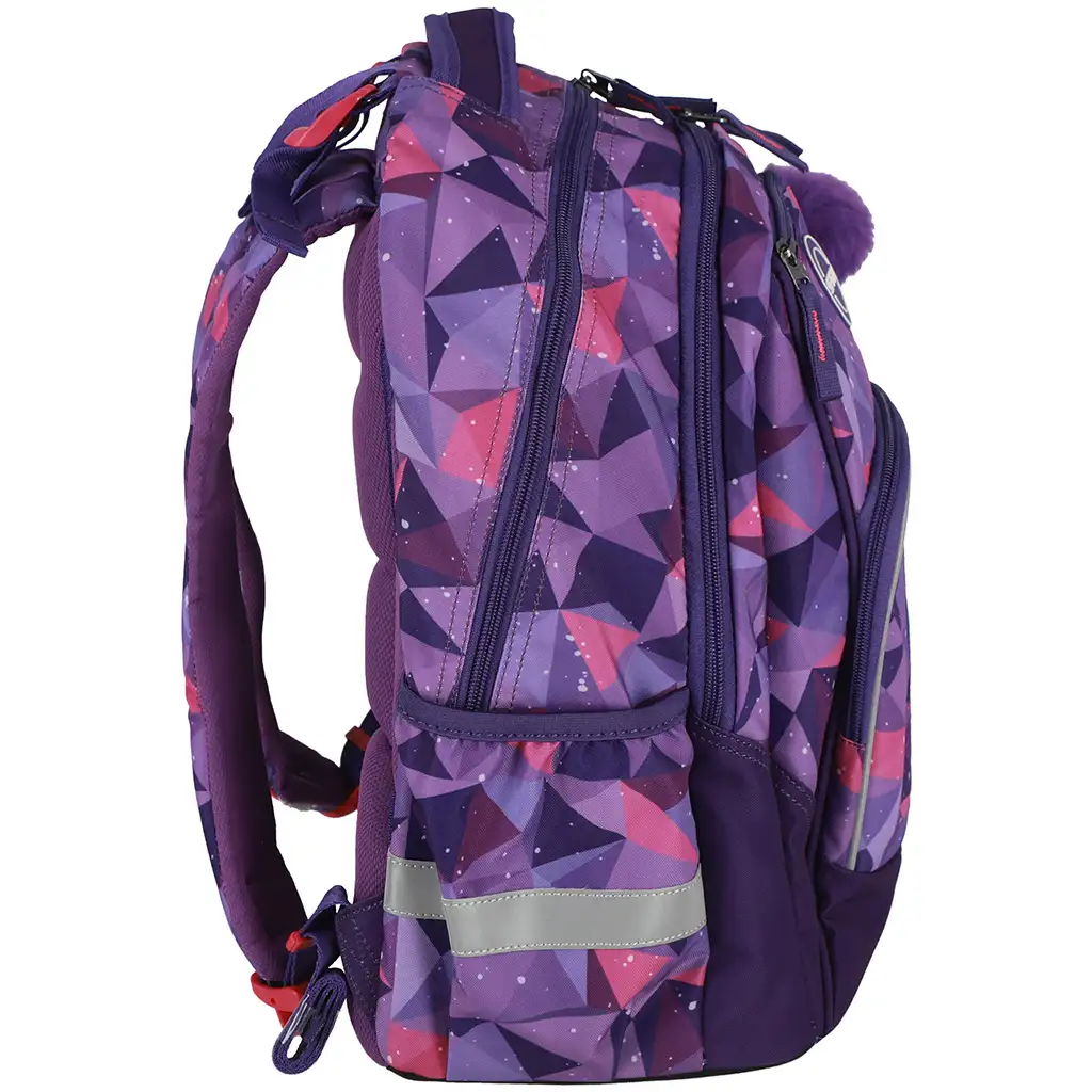 A Spirit Butterfly pillangó 3D mintás iskolatáska minden iskolás lány álma, aki szeretne stílusosan és praktikusan megjelenni az iskolában. A különleges, lekerekített formájú kialakítás, a harmonikus lila-rózsaszín színvilág és a geometrikus 3D hatású pillangós minta igazán figyelemfelkeltő, ugyanakkor rendkívül funkcionális iskolai kiegészítőt eredményez. Nemcsak szép, hanem okosan is van megtervezve, hogy kényelmes és jól használható legyen a mindennapi iskolai életben.