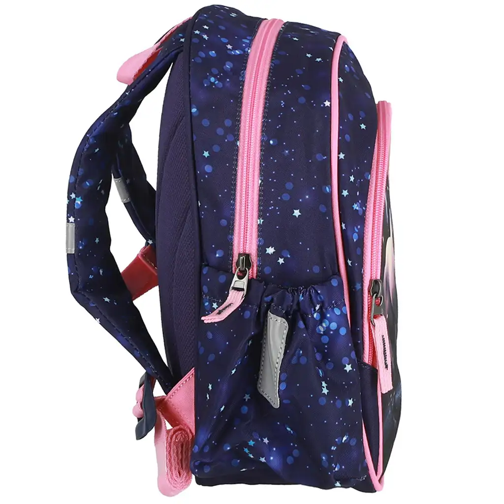 A csillagos háttérrel díszített dizájn és a rózsaszín részletek igazán egyedi és játékos külsőt adnak a táskának, amely tökéletes választás minden kis lórajongó számára.