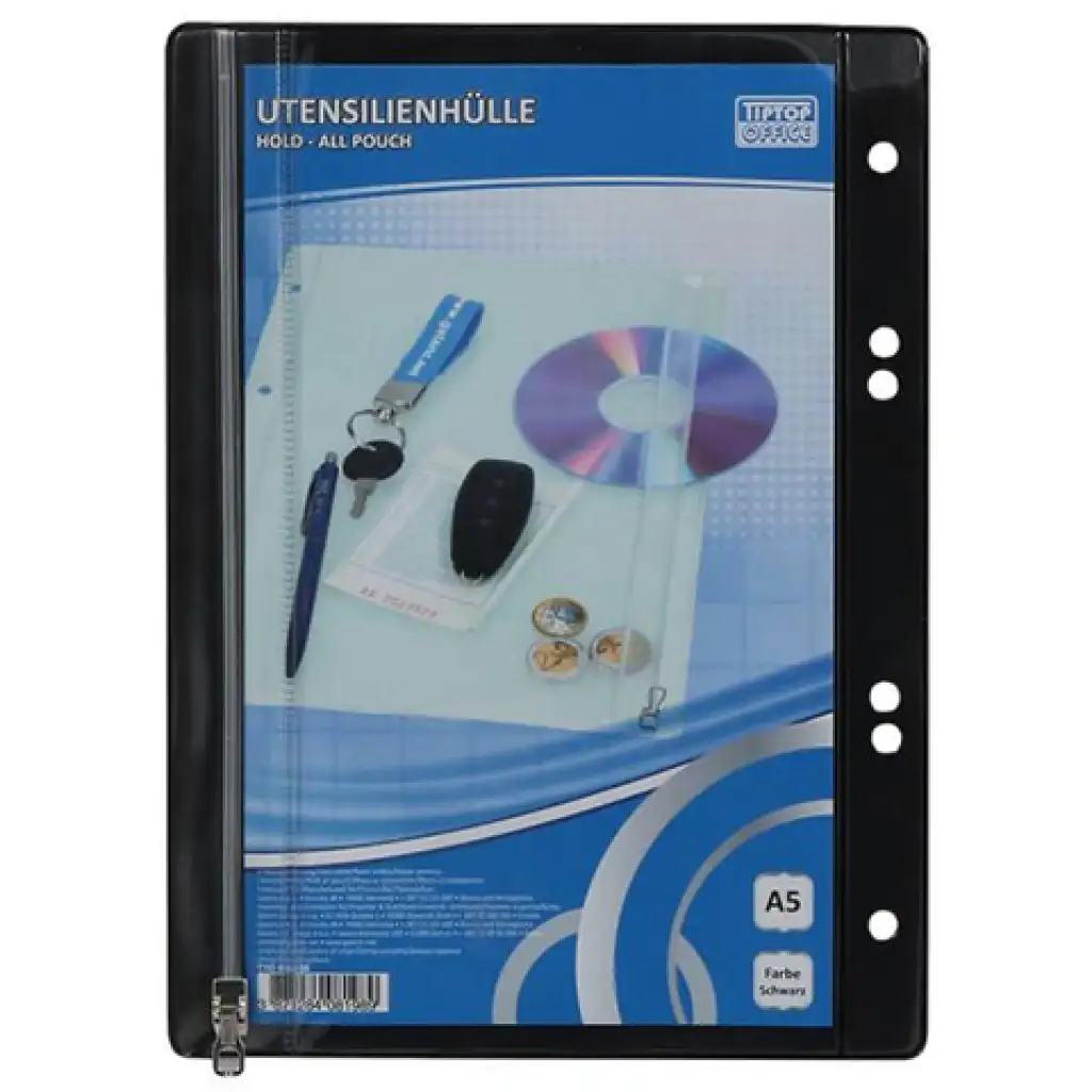 Ez az igazán praktikus, A/5-ös méretű lefűzhető cipzáras tasakkal könnyítheted meg az irodai munkád, hiszen segítségével a dokumentumokhoz szorosan kapcsolódó apró tárgyakat, mint például CD lemezt, pendriveot, kulcsot, pénzt és egyéb dolgokat biztonságosan tárolhatod és lefűzheted a mappába. A tasak fém cipzárral rendelkezik és a fekete hátlapon áttetsző borítás hozzájárul, hogy azonnal láthasd a tasak tartalmát.