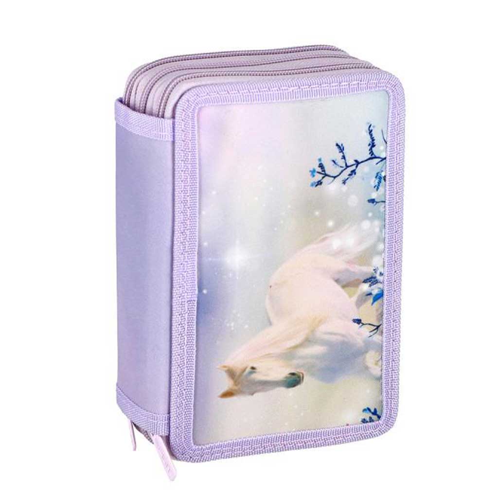 Ez a lovas mintával díszített, három szintes tolltartó tökéletes választás, ha gyermeked rajong a lovakért és a varázslatos, nyugodt hangulatú mintákért. A kecses, vágtató fehér ló és a finom pasztell árnyalatok igazán különlegessé teszik ezt a darabot, így nemcsak egy praktikus eszköz, hanem egy szerethető kiegészítő is lesz a mindennapokban.