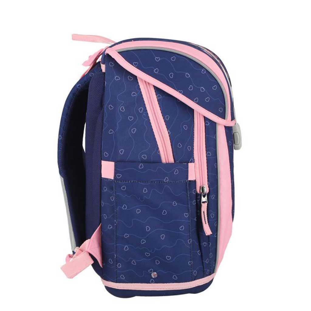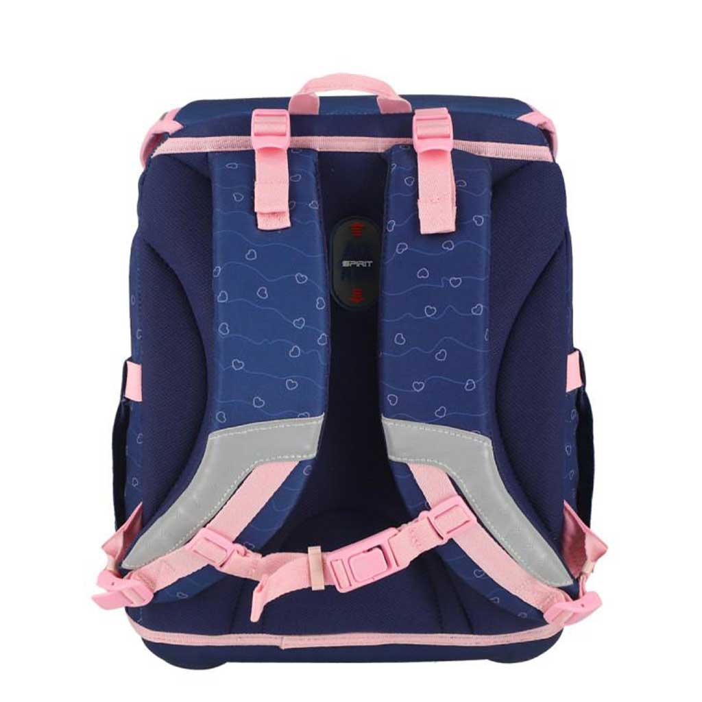 A táska belső kialakítása átgondolt: a nagy rekeszben kényelmesen elférnek a könyvek, füzetek vagy akár az uzsonnásdoboz, míg a belső zseb hálós rekesszel segíti a rendszerezést. A két nagy, bővíthető oldalsó zseb tökéletes kulacsnak vagy kisebb kiegészítőknek. Az ergonomikusan párnázott és állítható vállpántok, valamint az állítható magasságú kialakítás biztosítják, hogy a táska kényelmesen illeszkedjen gyermeked hátához. A robusztus, öntött lábakkal ellátott alsó rész extra stabilitást ad, míg az önbeálló elülső záródás fényvisszaverő elemekkel növeli a biztonságot a mindennapok során.