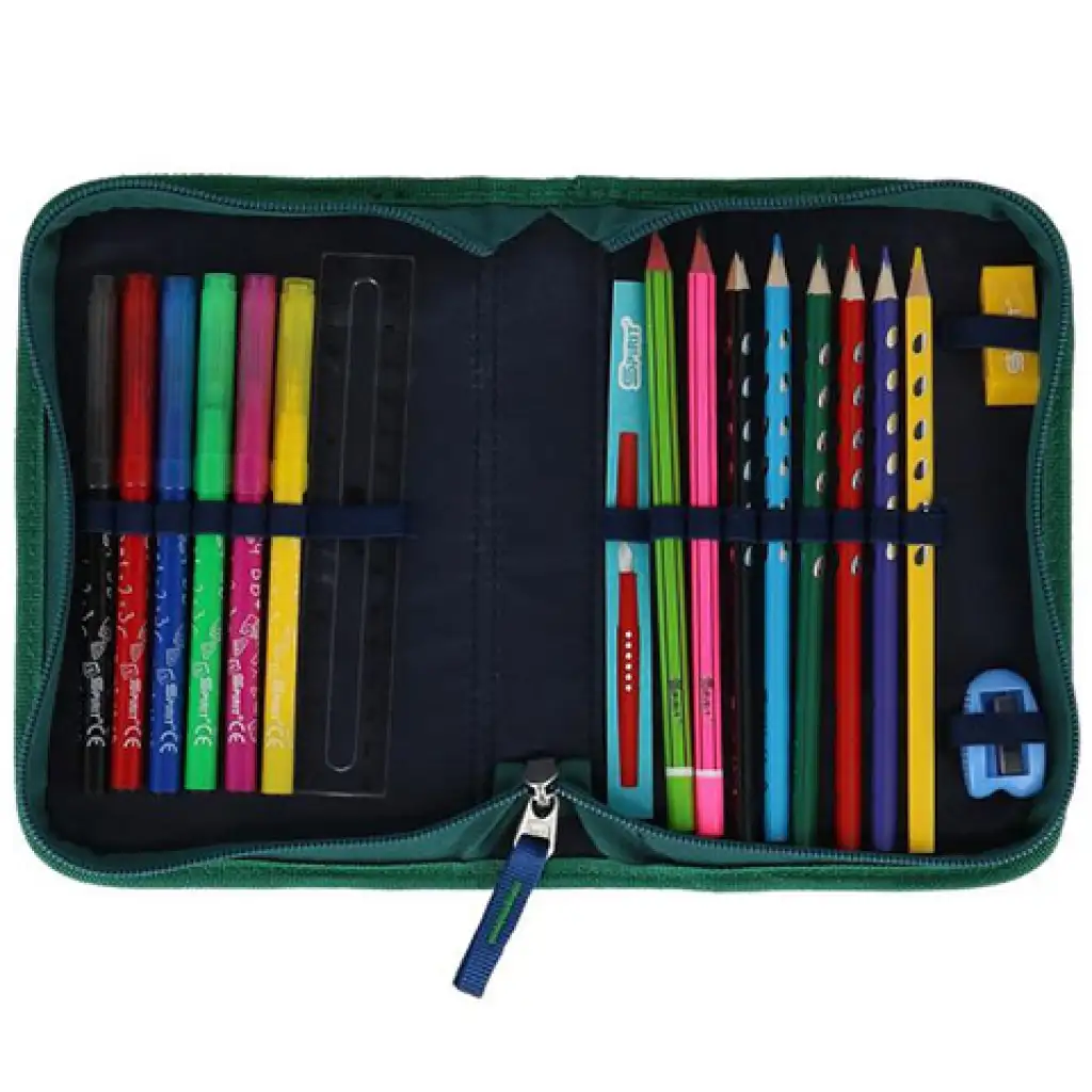 Ez a iskolai felszerelés csomag remek választás azoknak a gyerekeknek, akik szeretik, ha minden felszerelésük összhangban van, hiszen a készletben lévő tolltartók, sportzsák, pénztárca és iskolatáska is vagány kék színben pompázik, sőt a hátizsákot különféle mintákkal is lehet díszíteni. A hátizsákot a mutatós és variálható mintája mellett a kényelmes és praktikus kialakítás is jellemzi. A kényelemről a széles, állítható vállpántok, illetve a jól szellőző, párnázott hátrész gondoskodik, ráadásul a táska a gyerekek növekedéséhez állítható. A praktikus kialakítás pedig a hatalmas belső rekeszből valamint az első és oldalsó zsebekből állnak, ami jól rendszerezhetővé teszik a táska tartalmát. Végül de nem utolsó sorban a táska fényvisszaverő csíkokkal, és a LED világítással felszerelt csattal teszi biztonságossá a gyerekek útját a suliba és haza.
