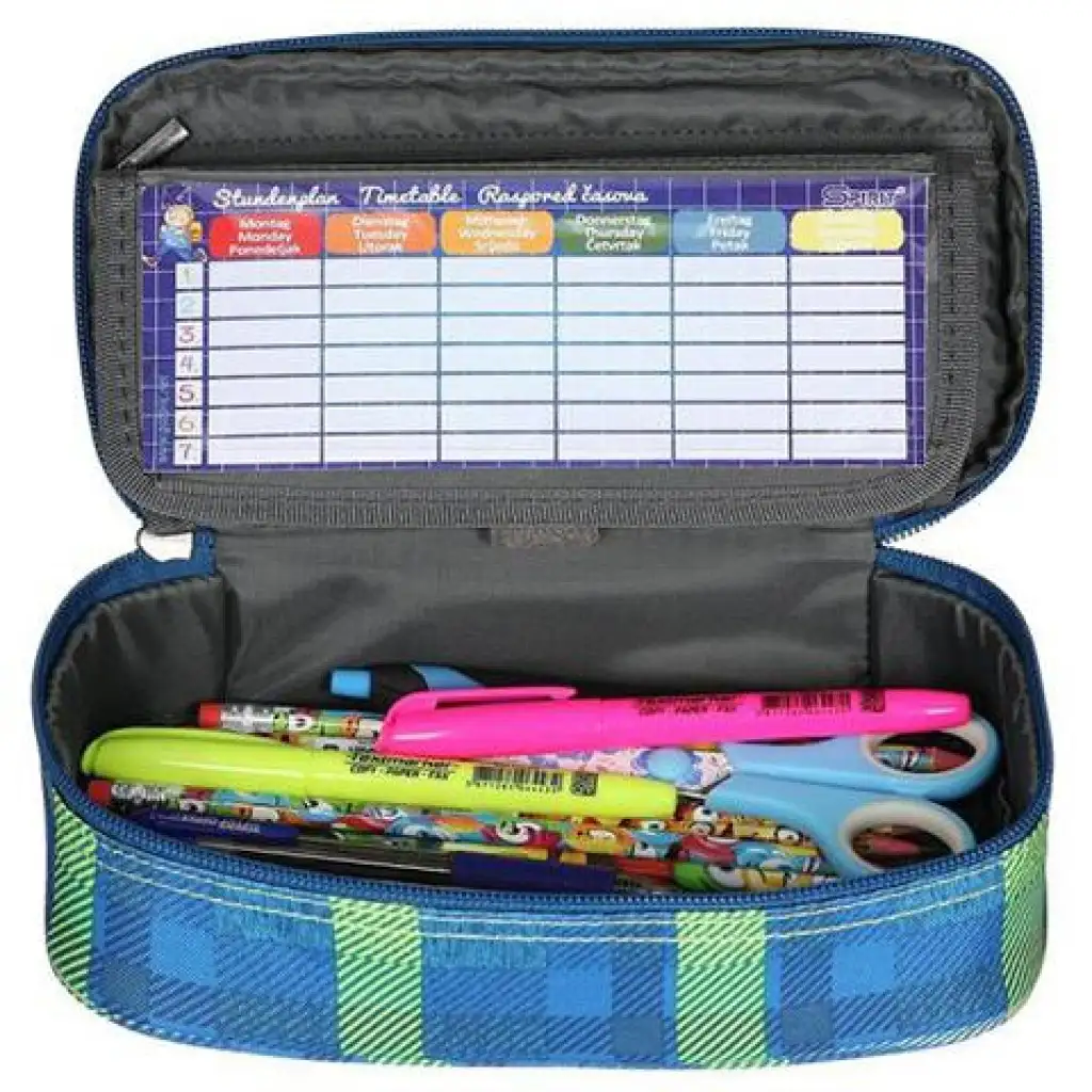 Ez a kék alapszínű, zöld csíkozással ellátott Spirit ovális tolltartó az ideális választás mind az iskolásoknak, mind az egyetemistáknak, hiszen praktikus és stílusos megoldást kínál az írószer tárolására és szállítására.