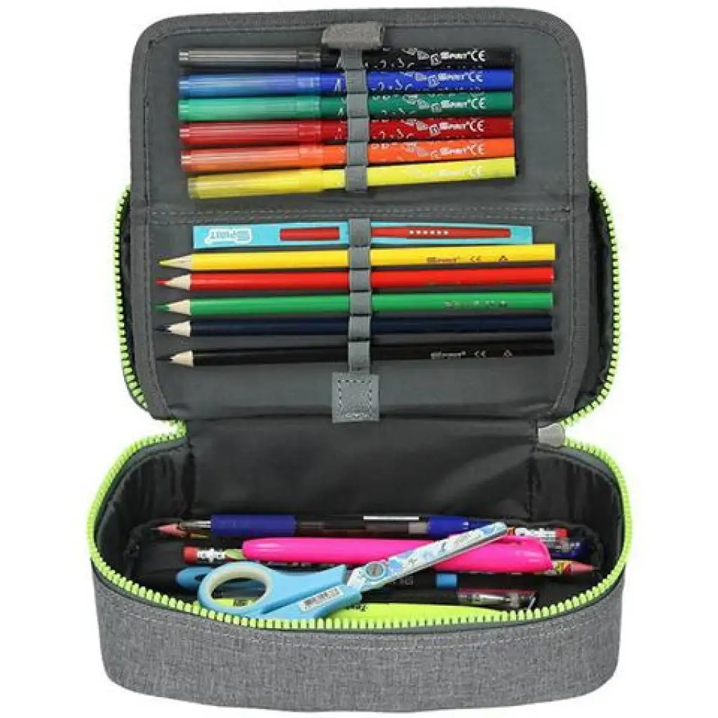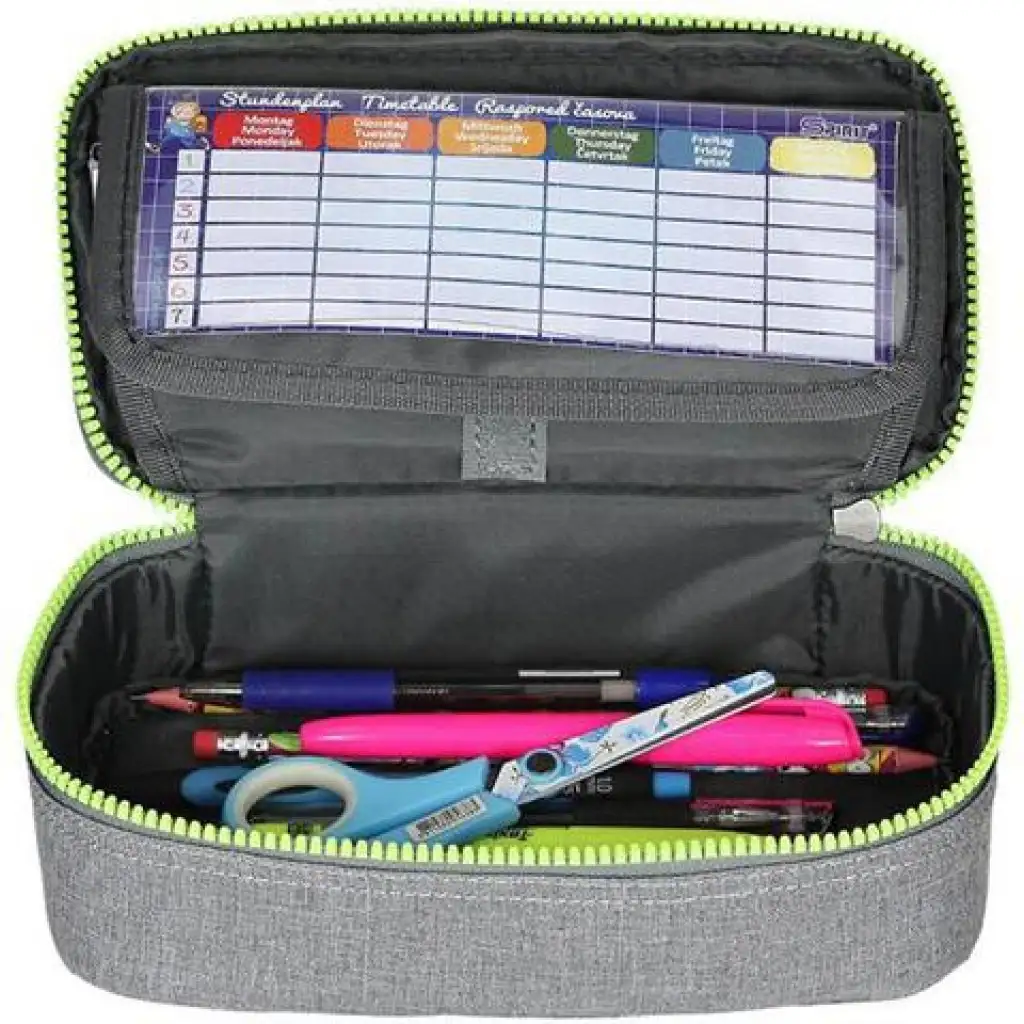 A kiváló minőségű anyagokból készült Spirit ovális tolltartó szürke alapszínét egy élénk neonzöld cipzár emeli ki, és ez a két szín egysége kiválóan összehangolódik, hogy divatos és feltűnő megjelenést kölcsönözzön az iskolapadnak. Legyen szó az általános vagy az egyetemi évekről, ez a tolltartó garantáltan stílusos kiegészítővé teszi a gyermeked iskolai felszerelését. A nagy belső tárolókapacitás lehetővé teszi, hogy számos írószer elférjen benne.