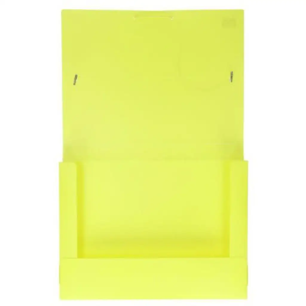 Egy igazán strapabíró és praktikus füzetboxba pakolhatjuk iratainkat, ha ezt a neon sárga dossziét válasszuk. A vastag kialakítású, teljes egészében polipropilén anyagból készült mappa remek választás irodába, iskolába vagy akár otthonra is. Látványos élénk neon sárga színének köszönhetően már messziről is könnyen észrevehető. A füzetbox egy gumizsinórral nyitható és zárható, valamint a vastag oldalszárnyak kihajthatóak a jobb rendezhetőség érdekében.
