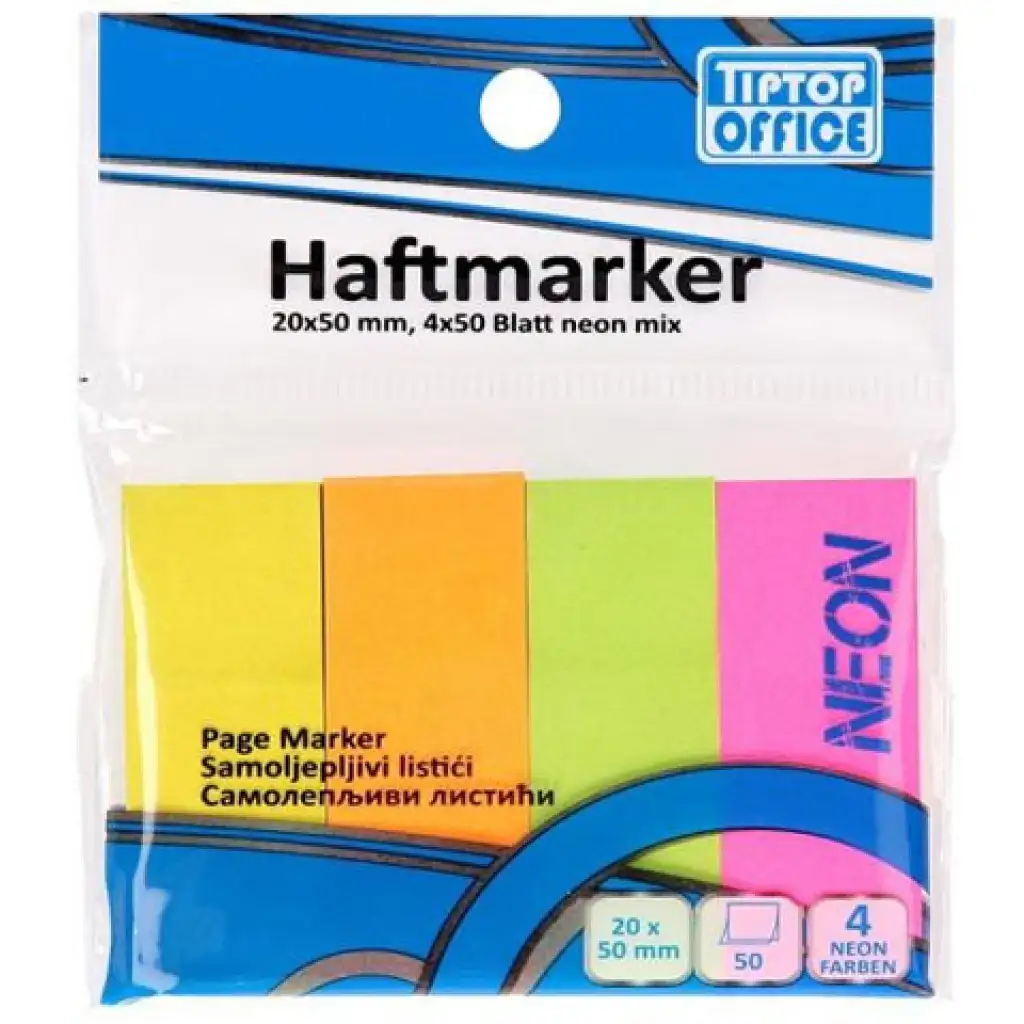 Ezeket a kis téglalap alakú jelölőket remekül használhatjuk az aláírásra szánt helyek megjelölésére épp úgy, mint egy dokumentumban meglapuló a fontosabb részek megjelölésére, sőt akár egy pár szavas megjegyzéssel is elláthatjuk a jelölőket, ha a különféle színek alkalmazása esetlen nem rendszerezné eléggé a dolgot. A csomagban négy különféle színű tömb található, minden tömböt ötven darab 20x50mm-es lap alkot, melyeket bármilyen sima és tiszta felületre felragaszthatunk, majd nyom nélkül el is tüntethetjük onnan.