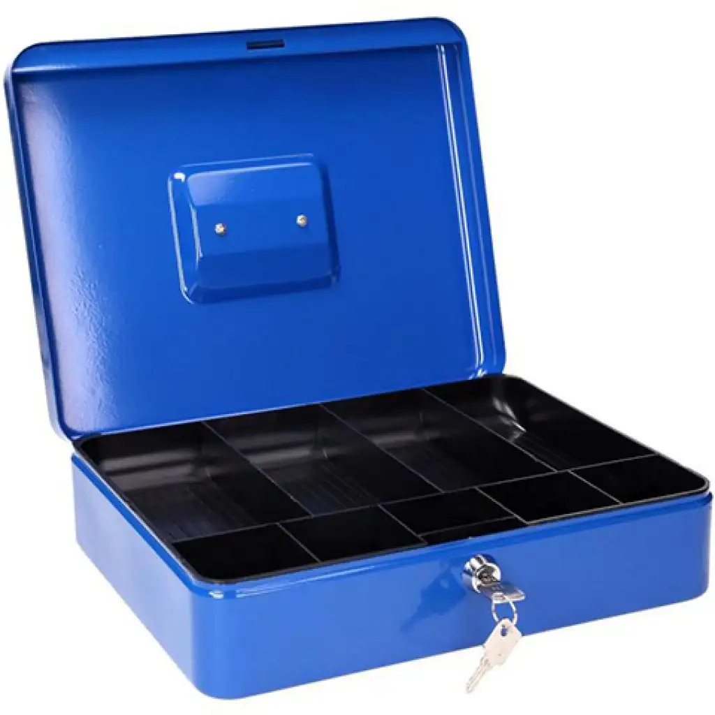 Egy igazán praktikus és egyben biztonságos pénzkazettát szerezhetsz be amely kék színre festett és fényes lakkal bevont felülettel rendelkezik. A pénzkazettát remekül felhasználhatod akár az irodai munkád során, akár az otthoni háztartásban hiszen biztonságosan tárolhatod benne a bankjegyeket és az aprópénzt egyaránt. A pénzkazetta kulccsal zárható és a masszív fém anyagának köszönhetően csak az férhet hozzá a beltartalmához, akinek kulcsa van hozzá. A pénzkazetta egy hordozófüllel is rendelkezik a könnyű szállítás érdekében.