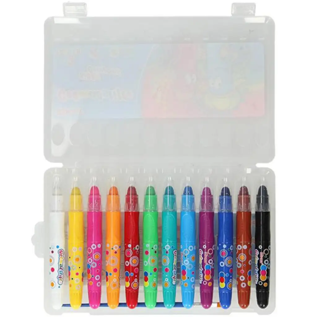 Szerezz be egy különleges zsírkréta szettet gyermeked számára, amely egy átlátszó műanyag tárolóban található és a 12 különböző színű zsírkréta a tokjából kicsavarható. A színek között olyanokat is megtalálhat amelyek a mindennapok során a leggyakrabban előfordulnak, így akár egy tájképet, várost, autót vagy bármely mást lerajzolhat, kiszínezhet a segítségükkel. A zsírkréta káros anyag mentes és a ruhából könnyedén kimosható.