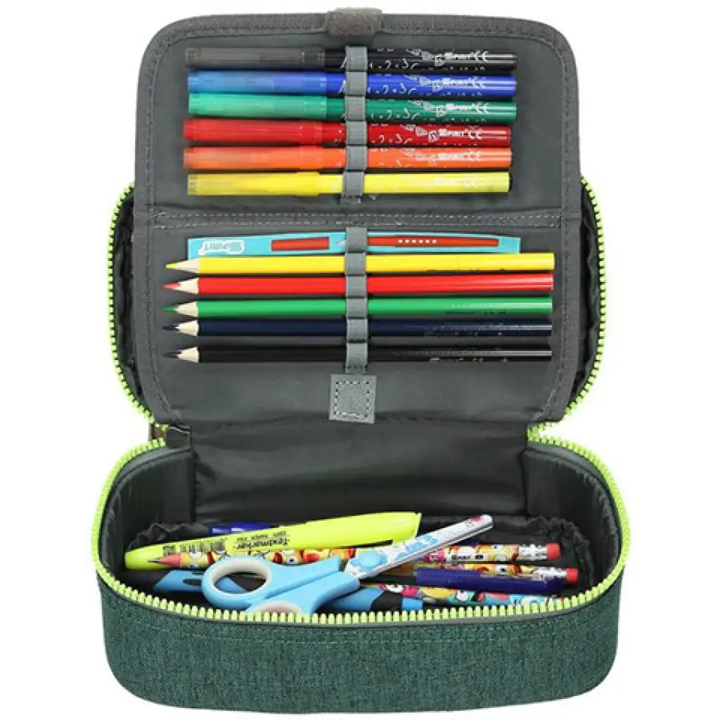 A Spirit ovális tolltartóinak ezen dizájnja azoknak lett elkészítve, akiknek a zöld szín a kedvenceik közé tartozik, hiszen a sötét és világoszöld árnyalat kiválóan harmonizál egymással a tolltartó felületén, így divatosan indulhat neki gyermeked az iskolai mindennapoknak. Nagy belső tároló méretének köszönhetően rengeteg írószer elférhet benne, míg általános iskolában az alapvető írószerek mellett a színes ceruzáknak és a filctollaknak kell elférnie benne, az egyetemi évek alatt inkább a körző, vonalzó és egyéb precíziós eszközök kaphatnak helyet a belsejében.