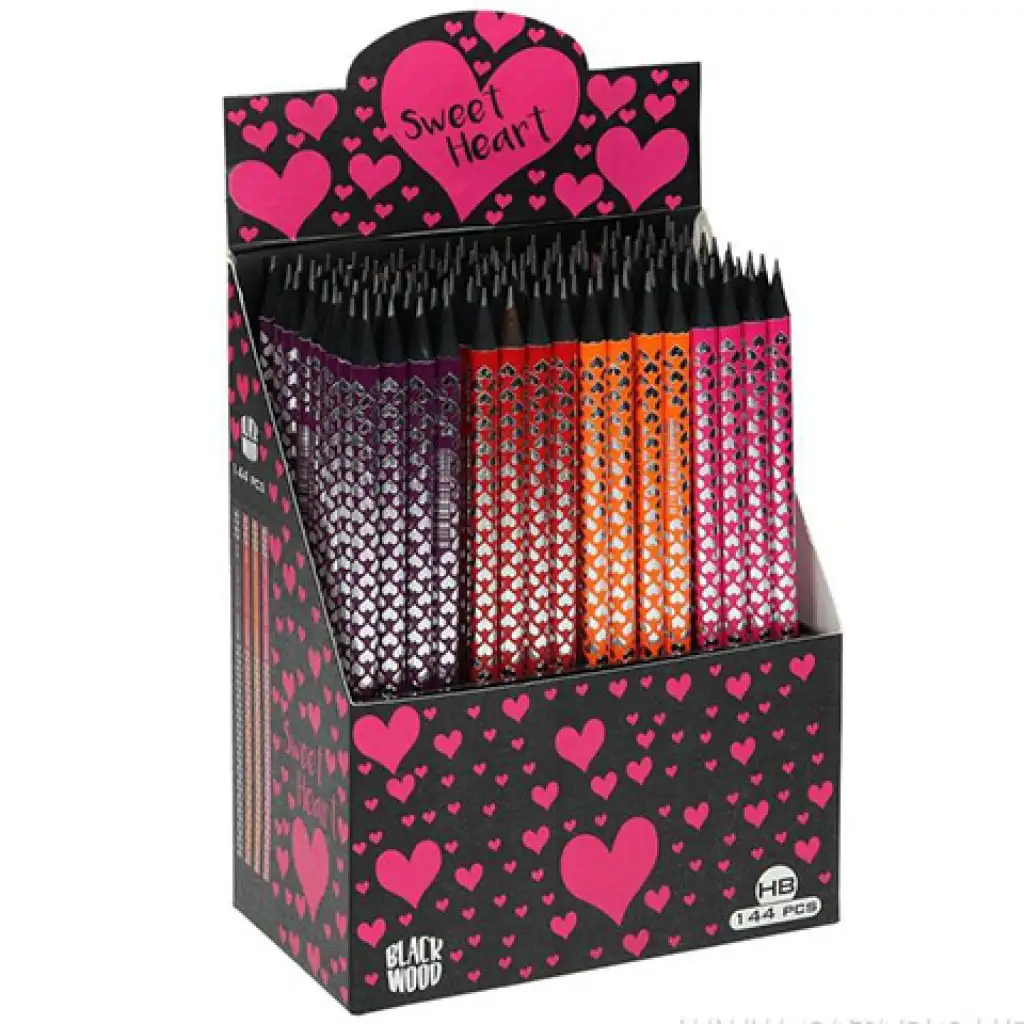 Szerezz be gyermeked számára egy kiváló minőségű, szívecske mintázattal ellátott fekete grafitceruzát amely kiváló minőségű grafitbéllel rendelkezik és használható akár az iskolai mindennapok során, akár kreatív használatra. A ceruzák gyárilag hegyezettek amelynek köszönhetően azonnal megkezdheti gyermeked a munkát akár az iskolában, akár az otthoni házi feladatok idején. Magas minőségű grafitbetétjének köszönhetően nehezen törik ki a helye, így hosszú ideig használható akár az iskolai mindennapok során, akár rajzolás alkalmával.