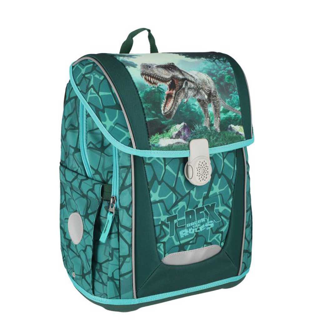 Ez a látványos T-Rex dinoszauruszos mágneszáras iskolatáska tökéletes választás, ha gyermeked rajong a dinoszauruszokért és az izgalmas, kalandos mintákért. A táska elején egy erőteljes, élethű T-Rex grafika kapott helyet, amely garantáltan felkelti a figyelmet, és még izgalmasabbá teszi az iskolába indulást. A zöld árnyalatok és a dinamikus mintázat igazán vagány megjelenést biztosítanak, amit a gyerekek imádni fognak.
