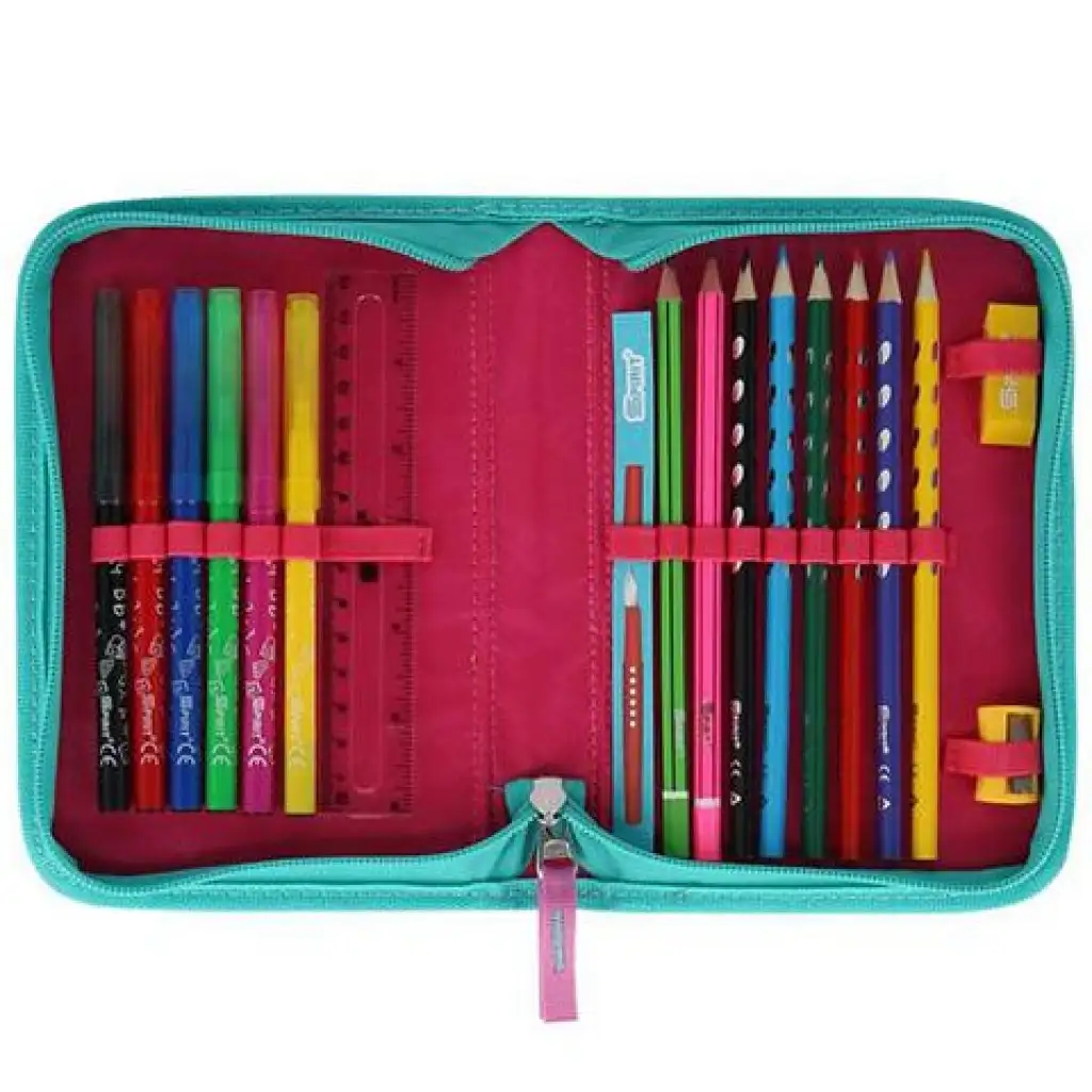 Ebben a rendkívüli értékkel bíró csomagban minden olyan felszerelés megtalálható, amire a kezdő iskolás kislányoknak szükségük lehet. A tolltartók között megtalálható egy hengeres és egy klasszikus kialakítású, amelyek már tartalmazzák az írószereket is. A készlet tartalmaz egy tornazsákot és egy pénztárcát is, amelyek mind mindennapi használatban jól jöhetnek.