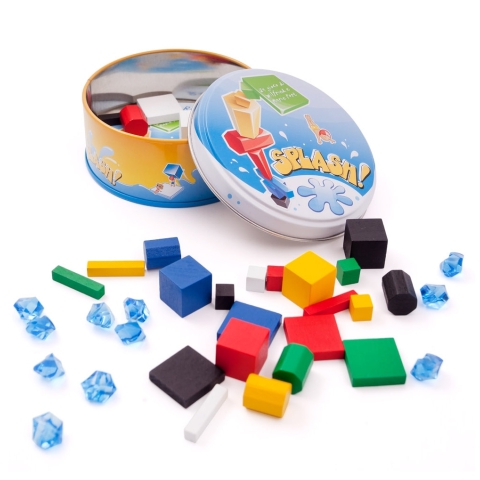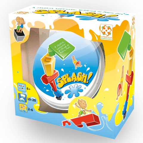 A Splash egy rendkívül izgalmas, gyors tempójú társasjáték, melynek lényege, hogy felépítsük a tornyot és úgy ügyeskedjünk, hogy az az ellenfelünknél dőljön össze. Az építsé során mindíg azonos színű vagy formájú építőelemet kell használni, mint az előző elem. Itt aztány tényleg nagyon fontos, hogy higgadtak maradjunk és ne remegjen a kezünk. Splash - egy csobbanás és máris a vízbe pottyanhatsz.