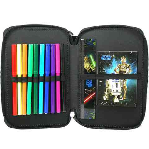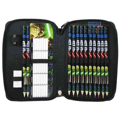 A Csillagok Háborújának kalandos története hosszú ideje csalja moziba rajongóit. Köztük van számos gyermek is köszönhetően annak, hogy a Star Wars az új filmmel ismét hódító útjára indult. Az emeletes, töltött tolltartó elején a sötét, gonosz erőket képviselő Darth Vader, és a nagy bölcsességű Jedi mester, Yoda szerepel lézerkarrdal a kezükben. A kétemeletes tolltartó tartalmazza azt a teljes írószer felszerelést, melyre az iskolában szükség lehet. A filctollakat kivéve a Star Wars szereplőit találhatod meg az összes írószeren.