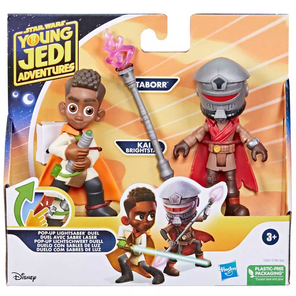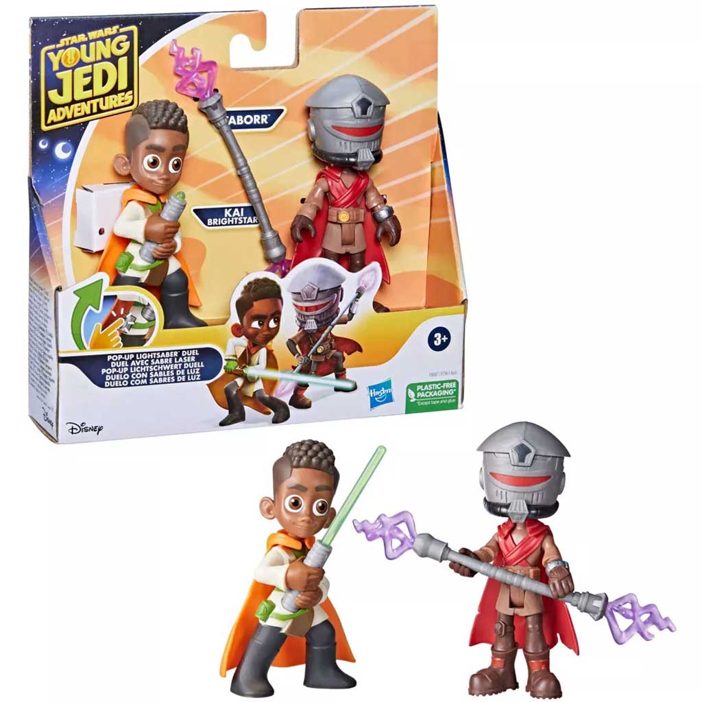 1. Hivatalos Star Wars termék: A Hasbro "Star Wars: Fiatal Jedi Kalandok - Tabor vs Kai Brightstar Figuraszett" két Star Wars karaktert, Tabort és Kai Brightstart ábrázolja.
