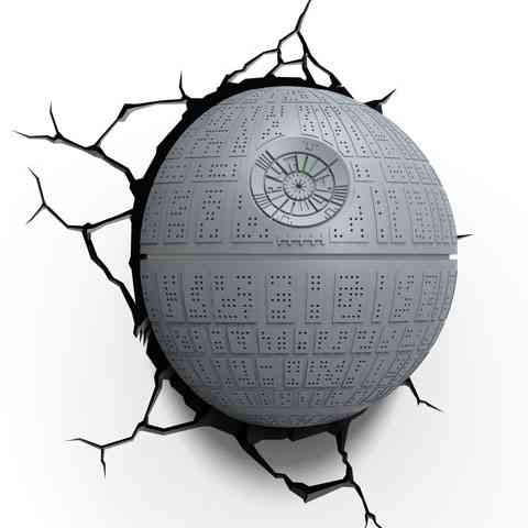 Szereld fel szobád falára a Halálcsillagot, a sötét oldal főhadiszállását. A Star Wars filmekből jól ismert ikonikus halál csillag a beépített LED izzóknak köszönhetően éjszakai lámpaként funkcionál, így lágy fényt biztosít a vak sötétben. Felszerelése igen egyszerű, csupán 2db tiplire és 2db csavarra lesz szükség melyeket a készlet tartalmaz. Az energiatakarékos LED izzók beépített elemes áramforrással rendelkeznek így nem kell kábelt elvezetni. A készletben található faltörést ábrázoló matricának köszönhetően még élethűbb képet ad a háromdimenziós halálcsillag látványa. Az integrált időkapcsoló segítségével 30 perces vagy egész éjszakás intervallumot lehet kiválasztani. A LED izzók élettartama kb 50.000 óra, nem melegszik így biztonságos használatot biztosít akár egész éjszaka.