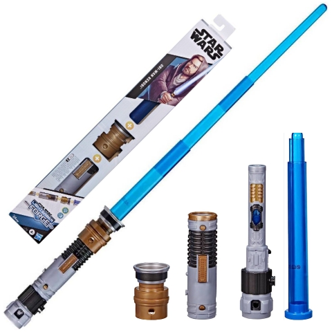 Obi-Wan Kenobi az egyik legfontosabb és legkedveltebb karakter a Star Wars univerzumban. Ő egy bölcs és tapasztalt Jedi mester, akinek Anakin Skywalker volt a padawanja, majd később a Galaktikus Birodalom elleni ellenállásban is kulcsszerepet vállalt. Obi-Wan a Jedi rend elveit és erényeit képviseli, és hűséges marad a jóhoz és az igazsághoz.A Hasbro fantasztikus Lightsaber Forge fénykardjai több részből szerelhetőek össze, így egymással tetszés szerint kombinálhatóak (a kombináláshoz több fénykard szükséges, melyek külön kaphatóak!). A kard négy részből tevődik össze; a markolat alapja, a markolat burkolata, a markolat teteje és a kinyitható penge. A játékot fény- és hangeffektek teszik még szórakoztatóbbá. A fénykard pengerésze kinyitható, így még élethűbb játékot tesz lehetővé. Az összecsukott kard mérete kb. 51cm, kinyitott mérete kb. 80cm. A játék működtetéséhez 3db AAA 1.5V-os elem szükséges, melyek külön kaphatóak.