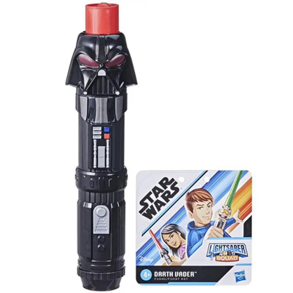 Noha az első csillagok háborúja filmekben Vader kifejezetten negatív hős volt, mégis elképesztően nagy rajongótábora lett a karakternek, amit a fekete páncélja, fenyegető jelenléte és persze a vagány vörös színű fénykardja miatt alakulhatott ki. Ez a játék lézerkard garantáltan a Star Wars rajongók kedvenc fegyvere lesz a Vader formájú markolat miatt. A Lightsaber Squad kardjait a teleszkópos kialakításnak köszönhetően egyetlen mozdulattal ki lehet nyitni, azonban nincs benne elektronika, így sem hangot, sem fényt nem bocsájt ki!