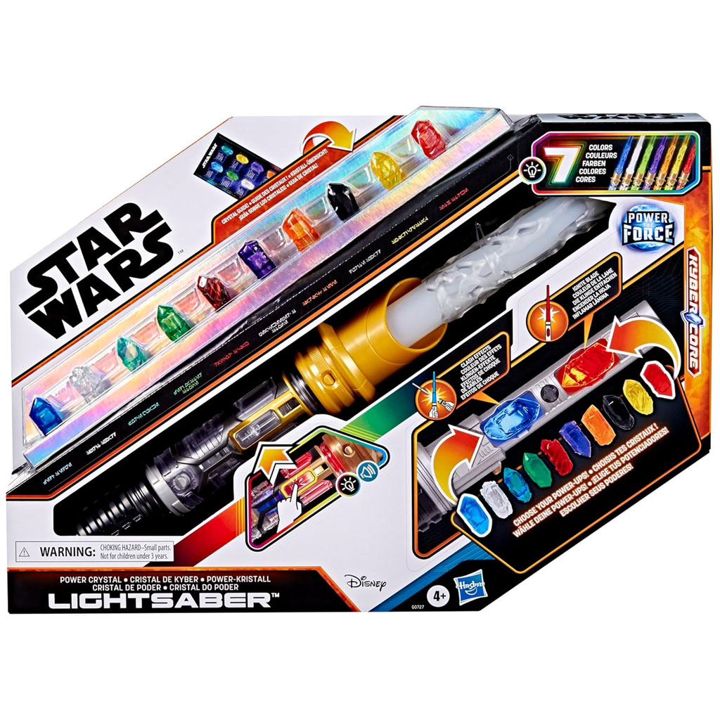 A gyerekek két kristályt helyezhetnek a markolatba – az egyik a penge, a másik a markolat színét szabályozza. A kristályok behelyezésekor a fénykard világít és hangot ad, így még életszerűbbé válik a játék. A csomag tartalmaz egy kihúzható, világító pengét, egy erőrobbanás-effektet, kupakot, markolatburkolatot és egy elektronikus központi egységet – ezekből a gyerekek saját, egyedi fénykardjukat rakhatják össze. A beépített kristálytartó rendszeren belül minden kristálynak saját helye van, a mellékelt útmutató pedig segít megismerni, melyik kristály milyen erőt képvisel a galaxisban.