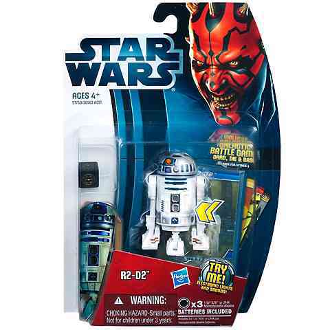 A Star Wars R2-D2 figura különböző fény- és hangeffekteket produkál, valamint a szett karakterkártyát, állványt és egy dobókockát is tartalmaz.