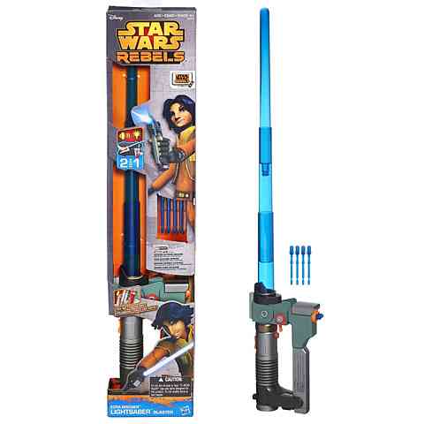 A Star Wars Rebels sorozat főszereplője Ezra, aki a Jedivé válás rögös útján számtalan kalandba és persze Birodalmi ellenfélbe ütközik. A kis hős fénykardját most Te is kipróbálhatod, melynek különlegessége, hogy nem csak fénykardjént használhatod, hanem az abba helyezett lövedékeket egy mozdulattal ki is lőheted. A fénykard markolatába egyszerre két lövedéket helyezhetsz el, melyek gombnyomásra útnak indulnak. A kék fénykard hangokkal és fényeffektekkel is szórakoztatja a kicsiket.