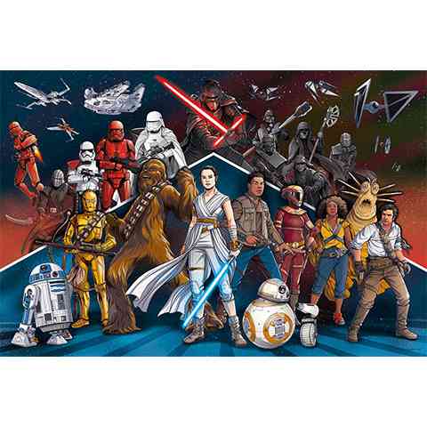 A Skywalker kora filmmel lezárult egy Star Wars történet, ami a Skywalker család tagjairól szólt egészen Anakin Skywalker gyerekkorától, azon keresztül, hogy Darth Vaderré vált, ám a gyermekei Luke és Leia sikeresen szembeszállt az Uralkodóval és a Birodalommal épp úgy, ahogy évtizedekkel később az Első Renddel is. Az utolsó Star Wars film legnevesebb szereplői köszönnek vissza erről a százhatvan darabos puzzleről, ami minden rajongónak megdobogtatja a szívét. A Trefl puzzle darabok tökéletesen illeszkednek és a kompromisszummentes, professzionális nyomdai eljárásoknak köszönhetően az elkészült kép lélegzetelállítóan éles és színpompás így a gyerekszoba egyik legszebb dísze lehet belőle.