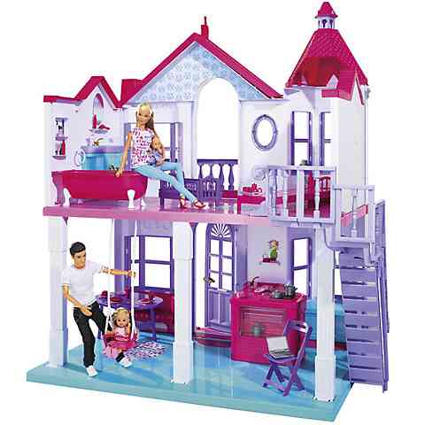 Legyen egy saját házad a Steffi Love babáidnak, amiben mindent eljátszhatsz, ami csak egy igazi családban történhet. A nagy méretű házban Steffi megfürdetheti a gyerekeket, elláthatja a háztartási teendőket, de a szórakozásból is kiveheti a részét. A gyerekek hintázhatnak de az emeleten le is pihenhetnek kicsit.