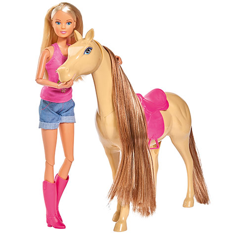 A kislányok egy igazi lovas hétvégét rendezhetnek, ahol Steffi Love babájuk bemutathatja hogyan tud bánni a csodaszép paripájával. A csomagban minden megtalálható, ami egy izgalmas lovagláshoz kell, sőt ez alkalommal egy igazán különleges, szép, barna hajú és kreol bőrű vagy egy szőke hajú baba kerülhet a készletbe, melyet te magad választhatsz ki a megjegyzés rovatban. A fésűvel szépen ki lehet kefélni a ló sörényét épp úgy, mint a baba haját, sőt néhány jutalom répa is a készlet része, amit minden ló nagyon szeret ropogtatni. A baba biztonságáról sem feledkeztünk meg, így a csomagba került egy fejvédő, ami biztonságosabbá teszi a lovas sportokat.