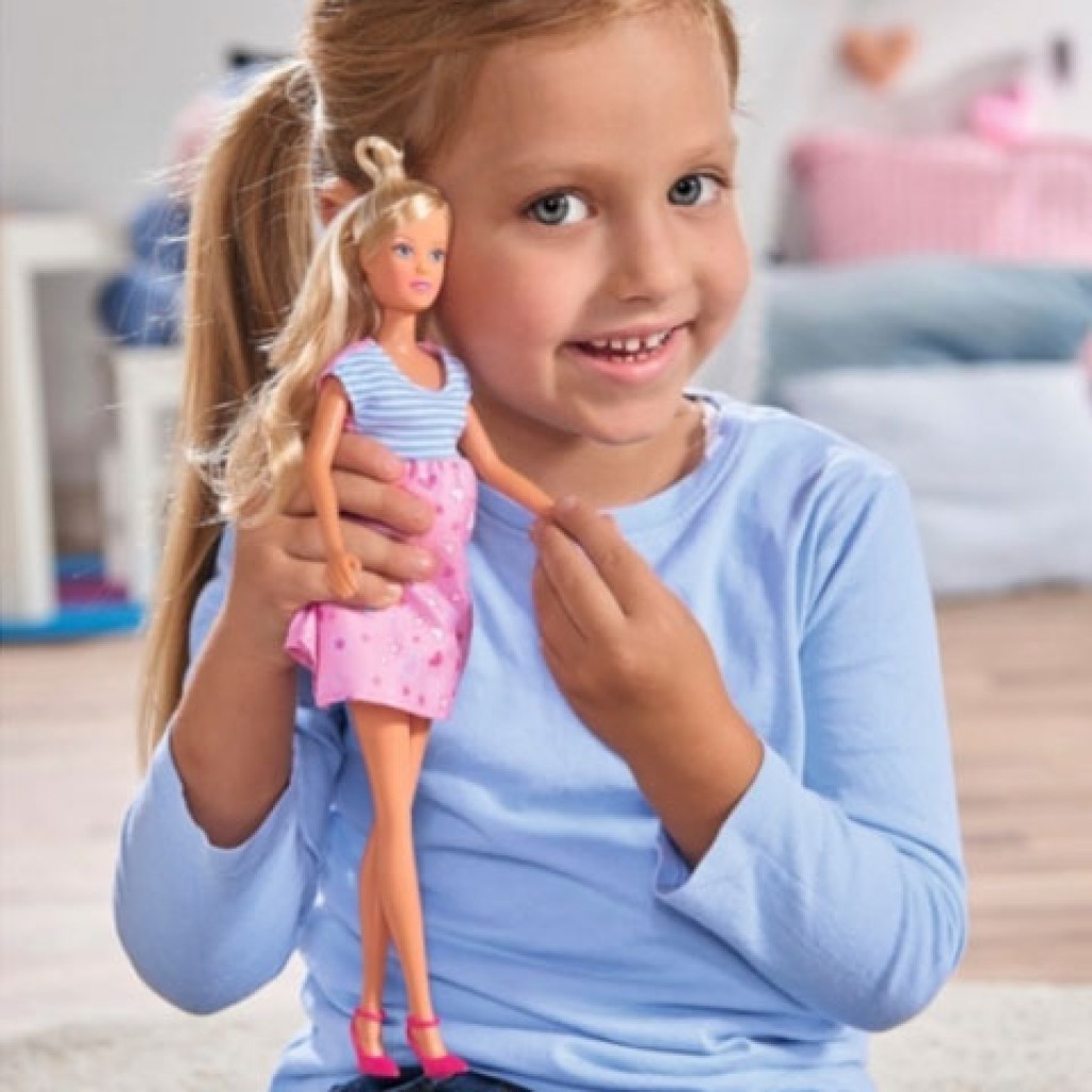 Steffi terhes baba lehet most gyermekedé, aki egy nagyon szép szettben érkezik, mely tökéletesen passzol gömbölyödő hasára. Steffi a jól ismert szőke hajjal érkezik, melyet fonni is lehet. A baba hasában egy kisbaba lapul, ám az meglepetés, hogy kisfiú, vagy kislány. Ez akkor derül ki, ha a szettben lévő meglepetés csomagot felbontja gyermeked, hiszen ebben találhatóak meg a különböző kiegészítők, melyek elengedhetetlenek a kisbabák részére. Szerezd be gyermekednek és kezdődhet a játék, ahol együtt gondoskodhatnak Stefi kisbabájáról.