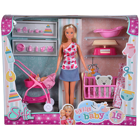 Ez a játékszett egészen biztos, hogy halatmas élmény lesz a kislányoknak, hiszen a rendkívül népszerű Steffi Love divatbaba most egy új területen mutatkozik, be, ugyanis egy újszülött babával és a szükséges kiegészítőkkel együtt érkezik. A csomagot természetesen tartalmaz egy csinos Steffi babát, szívecskés felsőben, és kis szoknyában, illetve egy újszülött babát is, így a gyerekek eljátszhatják a gondoskodó anyuka mindennapjait. A kis babakocsival sétálni indulhatnak, amit követhet az etetés, az esti fürdetés, és persze az alvás a szuper kiságyban. A csomag minden apróságot tartalmaz, amivel az egyes folyamatokat el lehet játszani.