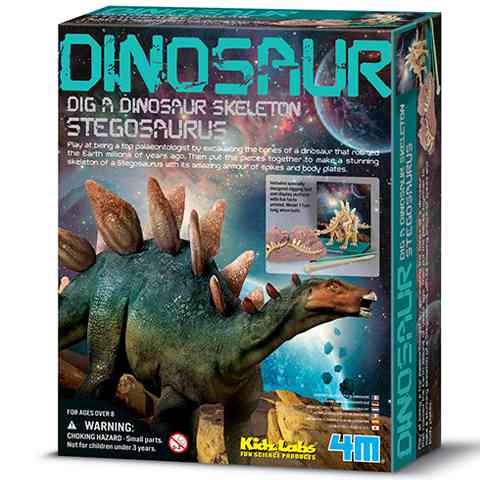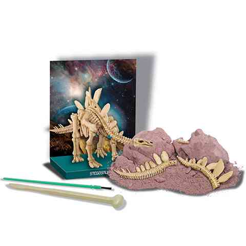 Egy izgalmas régészeti ásatás főszereplője lehetsz ennek a nagyszerű régészkészletnek köszönhetően. A 4M Stegosaurus régész készlet csomagban elsőre csak néhány szerszámot, és egy hatalmas gipsztömböt találsz, és ebben a tömbben egy dínó csontvázát rejtettük el, amit össze tudsz állítani, és szobád dísze lehet! A gipsztömböt vésővel kell megkezdened és amikor kezdenek előtűnni a csontok, akkor már csak óvatosan, ecsettel tisztogasd, nehogy megsérüljön a csontváz, éppen úgy ahogy egy igazi ásatáson lennél. Ezután már csak egy kis viasz használatával össze kell ragasztanod a csontokat, végül állványra teheted a Stegosaurus részletgazdagon kidolgozott csontvázát.