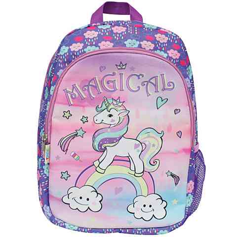 Csodálatos unikornissal díszített hátizsákkal indulhatnak kirándulni vagy épp csak óvodába a gyerekek, melynek mintázata azonnal megragadja a kislányokat. A színpompás sörénnyel rendelkező unikornis az ovis hátizsákon egy szivárványon áll, melyet szívecskés és csillagos motívumok vesznek körbe. A táska egy rekesszel és cipzáras zsebbel is rendelkezik, oldalán hálós zseb található a kulacsnak.