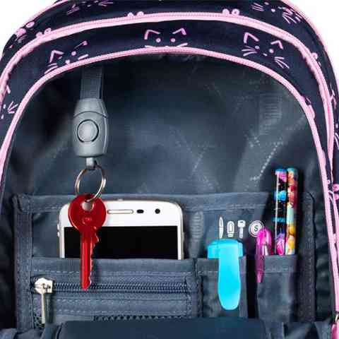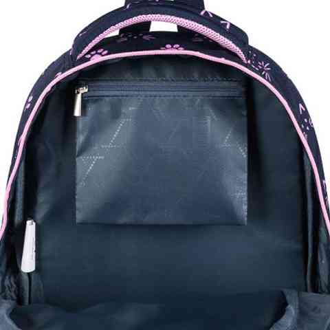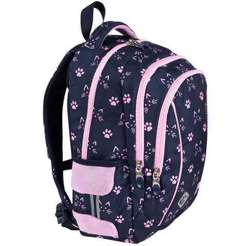 A cica kedvelő diáklányok egészen biztos szeretni fogják ezt az iskolatáskát, aminek a sötétkék alapszínét a rózsaszín mancsok, macskák és cipzárok varázsolják csajossá. A táska párnázott kialakítású hát részének, valamint az állítható és széles vállpántoknak köszönhetően a gyerekek számára kényelmes. A minőségi, vízálló anyagból készült iskolatáska a tárolásban is praktikus, hiszen több nagy rekesszel és cipzáras zsebbel is rendelkezik a könyvek és füzetek számára, valamin gumis oldalzsebben van hely a kulacsnak. Végül de nem utolsó sorban igen hasznos a megerősített talp rész valamint a biztonságot nyújtó fényvisszaverő minták is.