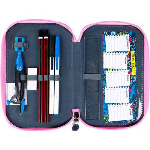 Minden lány szereti a cicákat, így biztos, hogy imádni fogja ezt a tolltartót is, ami a praktikus belső kialakításával és számtalan írószerével épp úgy elnyeri a diákok tetszését, mint a külső mintájával és csajos színeivel. A tolltartó cipzárral nyitható és zárható, aminek az egyedi mintázatú gumi fogórésze illeszkedik a tolltartó színvilágához és motívumaihoz. A tolltartóban belül több írószer számára kialakított gumis tárolót találunk. Tolltartó színes filcekkel és ceruzákkal, grafit ceruzákkal és kiegészítőkkel feltöltve érkezik, így a gyerekek bőségesen el lesznek látva minden szükséges dologgal.